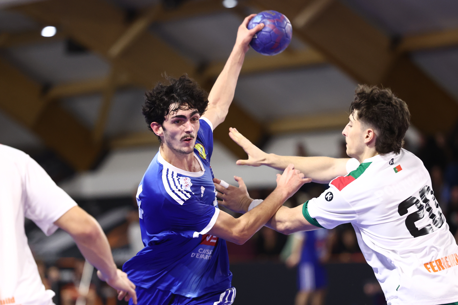 24 heures après la claque reçue en ouverture du tournoi face à une solide formation de la Hongrie (33-37), l’heure était à la réaction pour l’équipe de France de Franck Prouff qui avait, face à elle, de redoutables portugais vainqueurs de la Suède la veille (30-26). C’est donc l’esprit revanchard que les Bleuets démarraient leur deuxième rencontre dans ce Tiby Handball Val d’Oise. Mais d’entrée, l’excellent Santiago Povoas sortait une sublime double-parade.